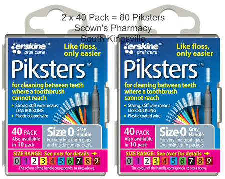 2 x 40 Pack = 80 Piksters Size 0 Interdental GREY Handle Brush Like Floss