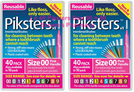 2 x 40 Pack = 80 Piksters Size 00 Interdental PINK Handle Brush Like Floss