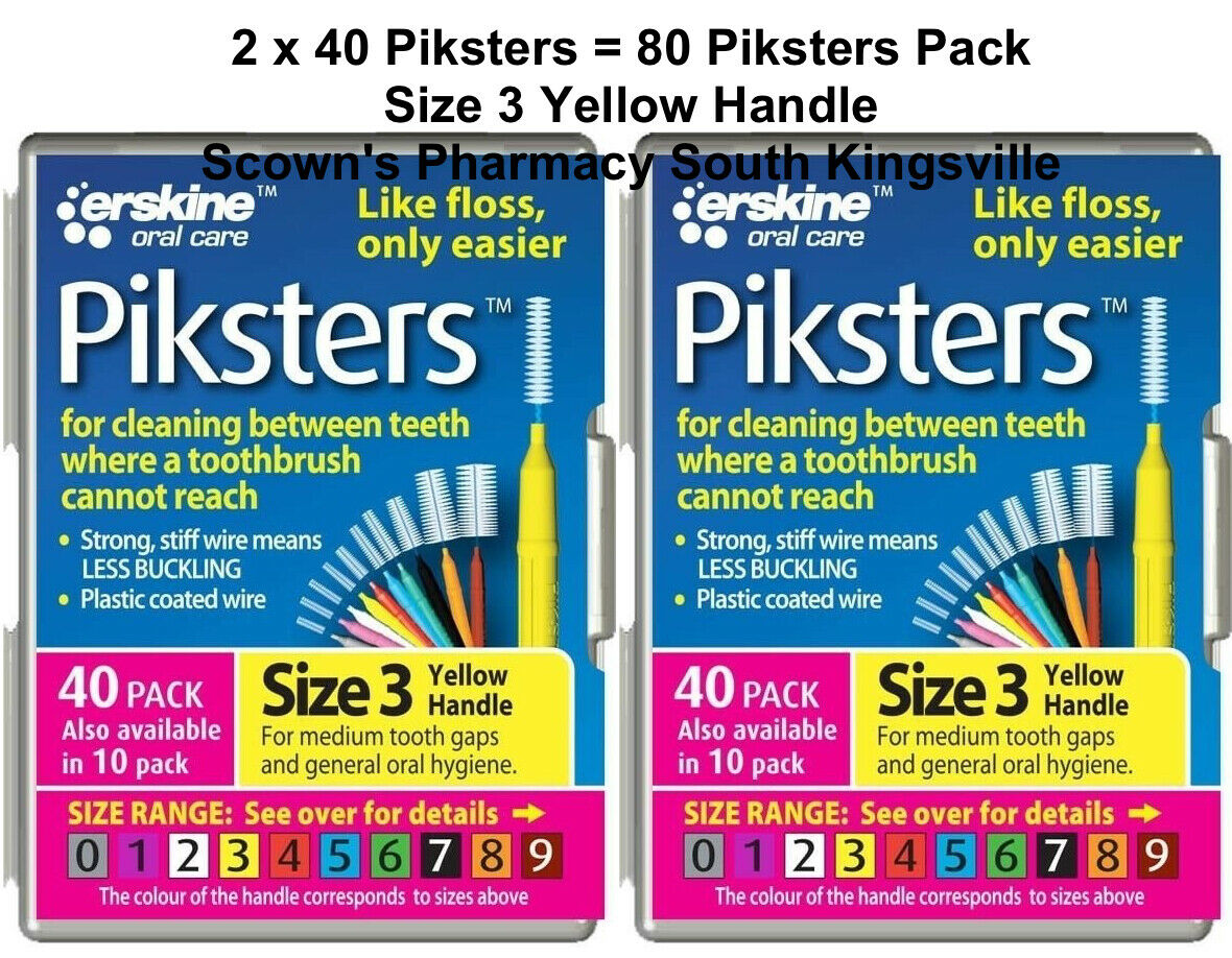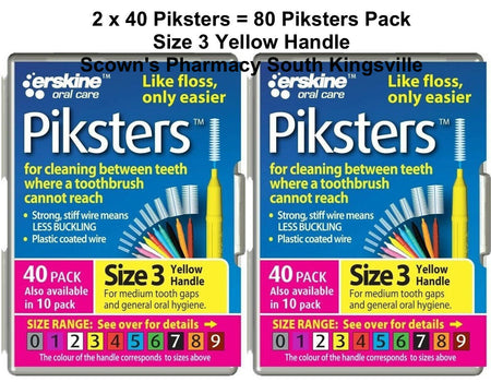 2 x 40 Pack = 80 Piksters Size 3 Interdental YELLOW Handle Brush Like Floss