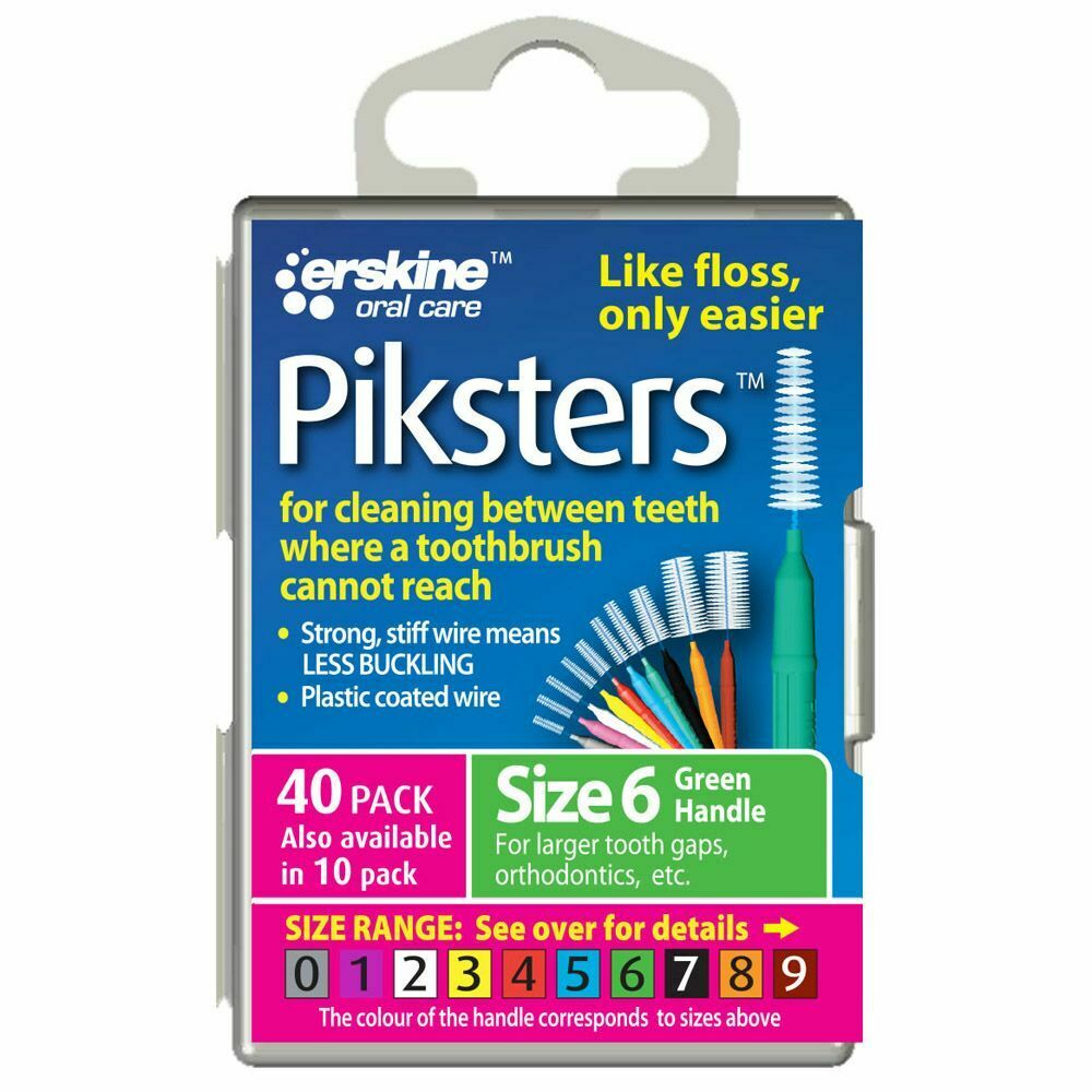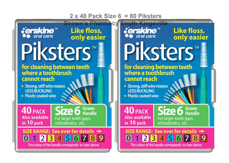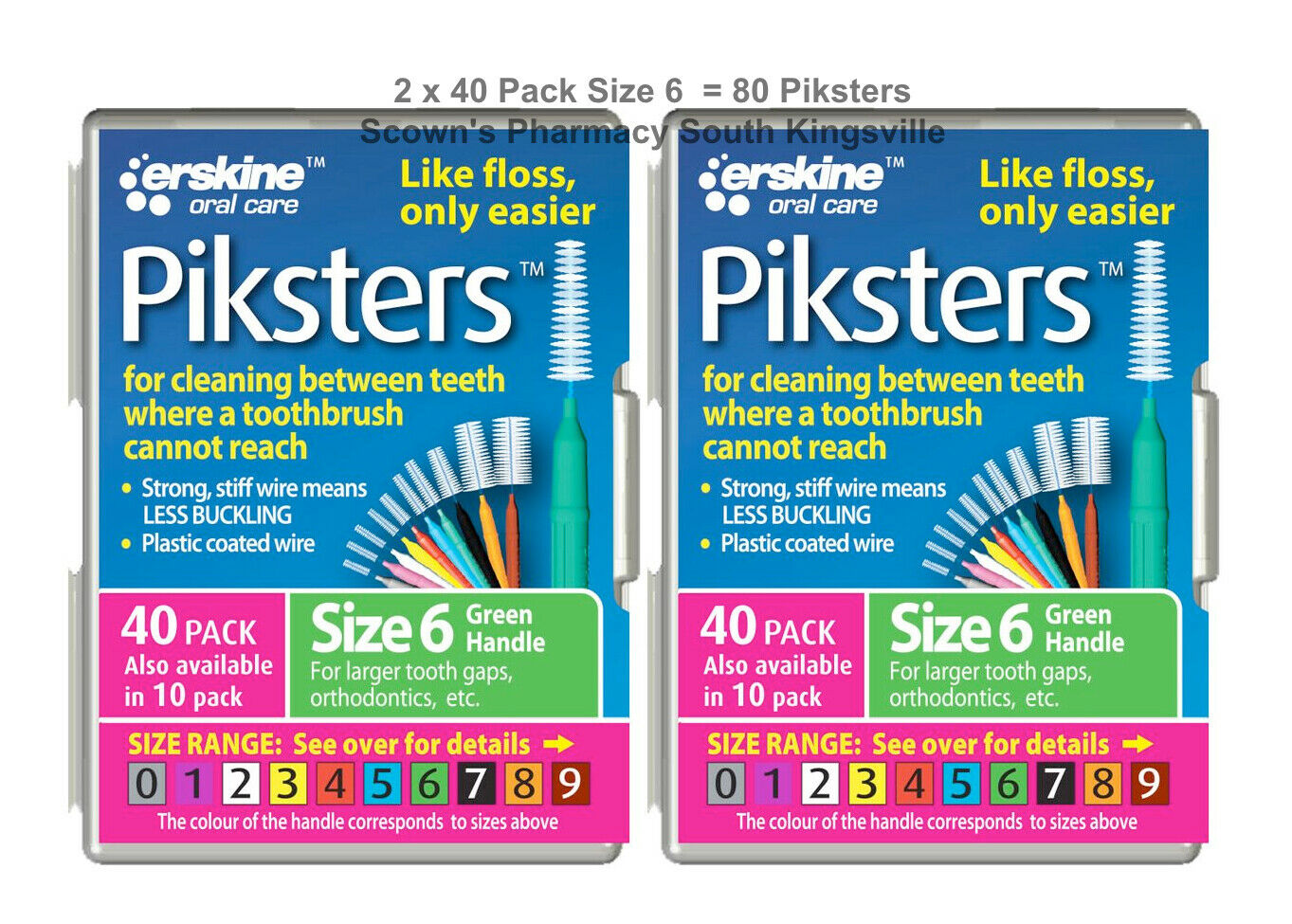 2 x 40 Pack = 80 Piksters Size 6 Interdental GREEN Handle Brush Like Floss