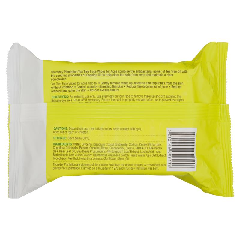 Thursday Plantation Tea Tree Face Wipes For Acne combine the antibacterial power of Tea Tree Oil with the soothing properties of Copaiba Oil to help clear the skin from acne and maintain a clear complexion.