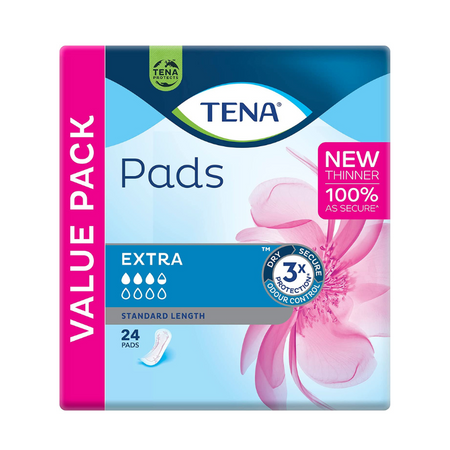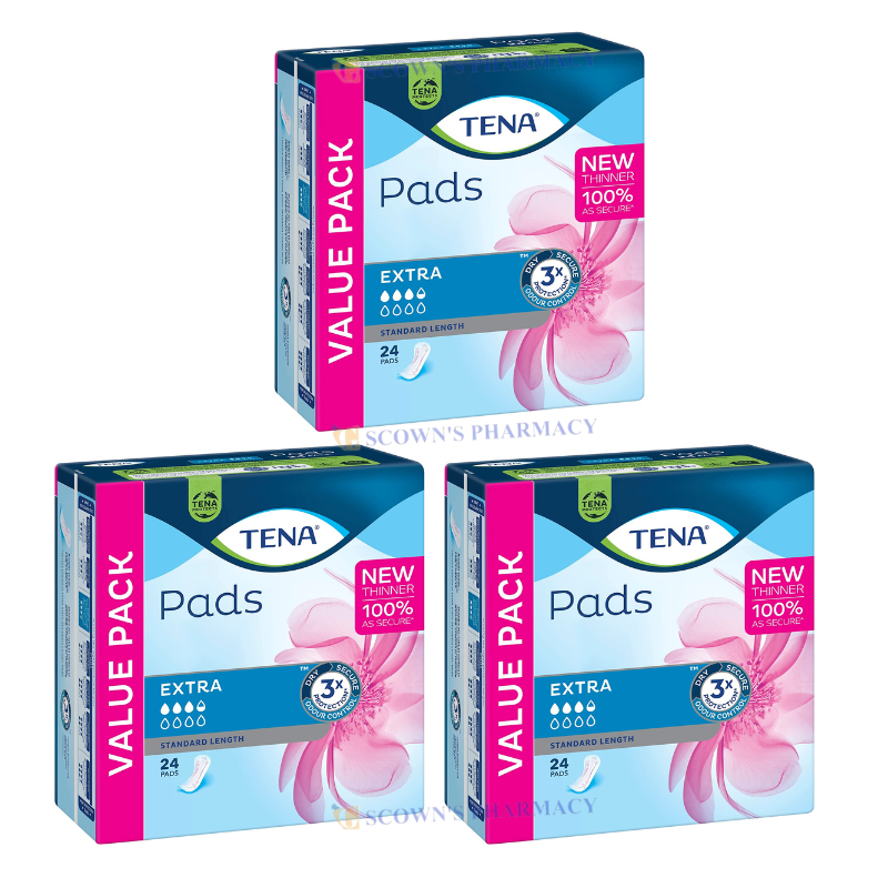 3 x TENA Pads Extra Standard Length Discreet & Secure Protection 24 Pack = 72 Pads