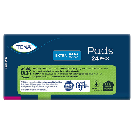 TENA Extra Pads Standard Length is specifically designed for women with a close body fit for added security and comfort. This incontinence pad is ideal for light to moderate bladder leaks.