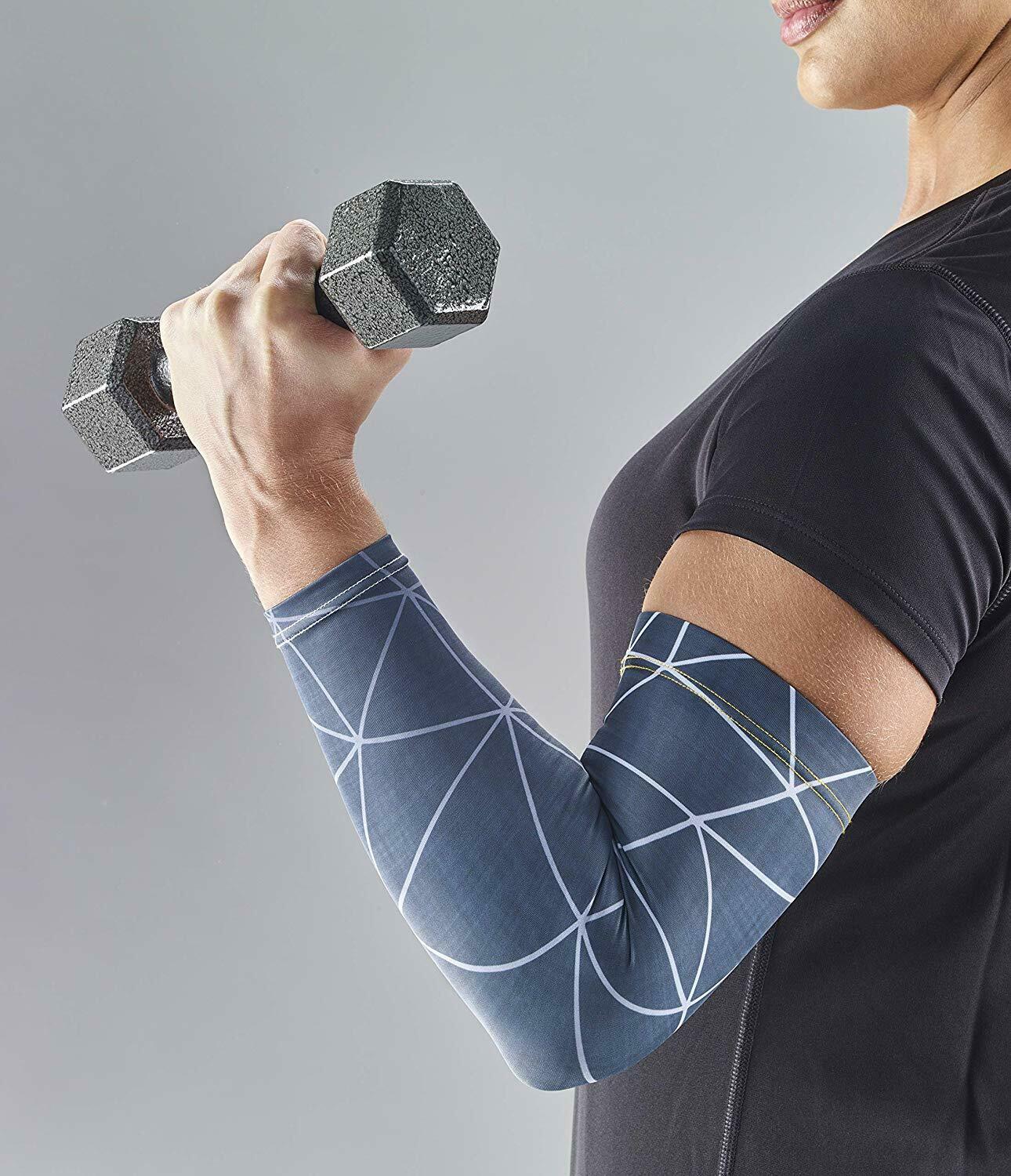From the tennis court to the golf course, rely on the comfortable support of the FUTURO™ Performance Compression Arm Sleeve. Designed to provide continuous, even compression to your muscles, the snug fitting fabric provides a comfortable feel while the stretchy, anatomical design allows for a full range of motion. Light and breathable, this compression arm sleeve helps keep you cool, even on hot game days, and the graphic print gives your active wear a modern edge. Feel your best and stay in the game with the style and comfort of the FUTURO™ Sport Performance Compression Arm Sleeve.