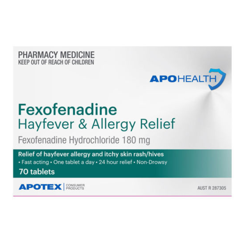 APOHEALTH Fexofenadine 180mg Allergy and Hayfever Relief 70 Tablets
