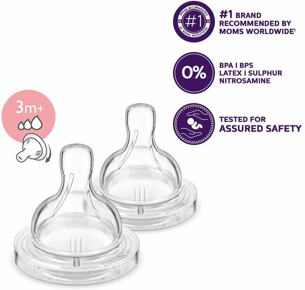 Avent Teat Silicone X2 MEDIUM Flow 3months+ 2 Pack - Anti Colic