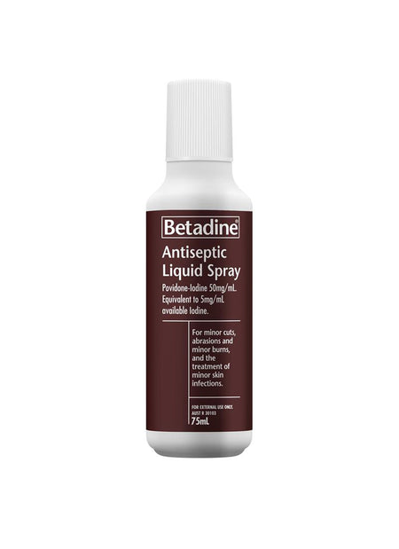 Betadine Antiseptic Liquid Spray kills bacteria commonly responsible for minor wound and skin infections. It is recommended for antisepsis of minor cuts and abrasions and treatment of minor skin infections. This spray pack makes application convenient and not messy.