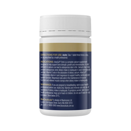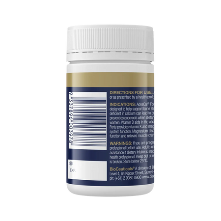New Formula! Please note AdvaCal® Forte tablet is now brown. AdvaCal® Forte is a dietary supplement for bone health designed to help support bone strength, growth and mineralisation. A diet deficient in calcium can lead to osteoporosis in later life. Calcium may help prevent osteoporosis when dietary intake is inadequate in post menopausal women. AdvaCal® Forte provides vitamin D to aid in the absorption of calcium, and vitamin K and magnesium to support healthy cardiovascular system function. Magnesium also aids in the maintenance of healthy muscle function and relieves muscle cramps when dietary intake is inadequate.