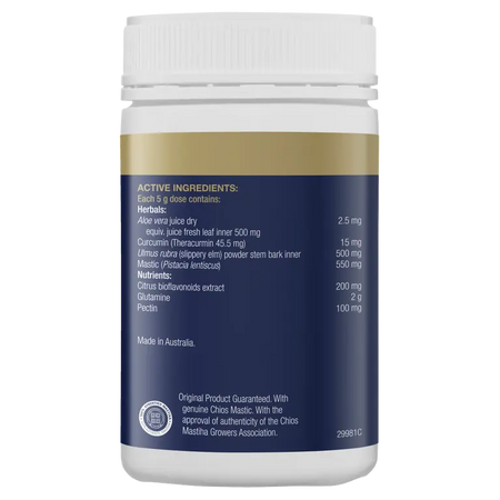 Intestamine® is a gut health supplement that features mastic gum. It relieves symptoms of dyspepsia, gastrointestinal pain and heartburn. Slippery elm bark is traditionally used in western herbal medicine (WHM) as a demulcent that soothes irritated tissues. It helps decrease symptoms of mild gastritis and mild gastrointestinal tract inflammation.
