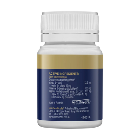 RestoraCalm® Night is a triple action formula, designed to calm the mind, relieve symptoms of stress and enhance sleep quality and deep sleep. This specialised formula contains AlphaWave® L-theanine, Affron® saffron (Affron® is a registered trademark of Pharmactive Biotech Products, S.L.U) and lutein. AlphaWave® L-theanine is a calming amino acid, which supports relaxing alpha waves in the brain. Affron® saffron supports refreshing sleep and sleep quality, helping to prepare you for the day ahead. Stress is a factor which can affect sleep. Lastly, lutein aids the body to cope with environmental stress. Environmental stress can include electronic screen exposure.