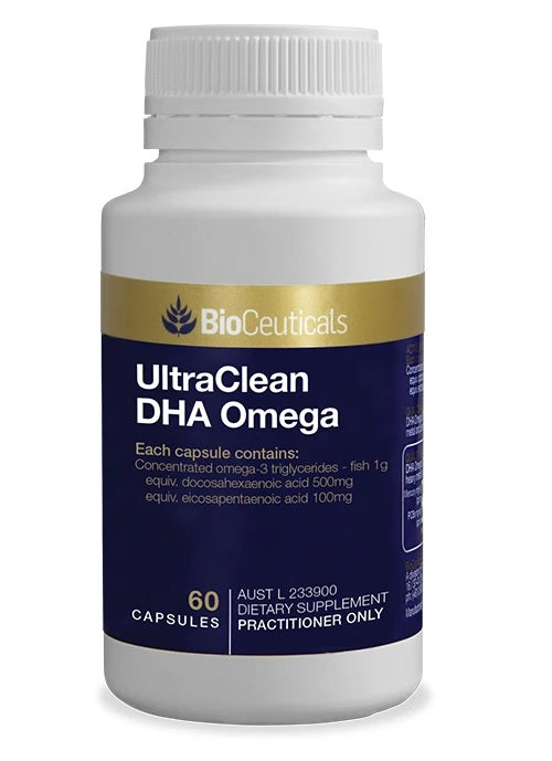 Developed by BioCeuticals, UltraClean DHA Omega provides a highly concentrated ratio of docosahexaenoic acid (DHA) to eicosapentaenoic acid (EPA). Both are essential omega-3 fatty acids, with DHA being an indispensable component of cell membranes and found in large quantities in brain cells.