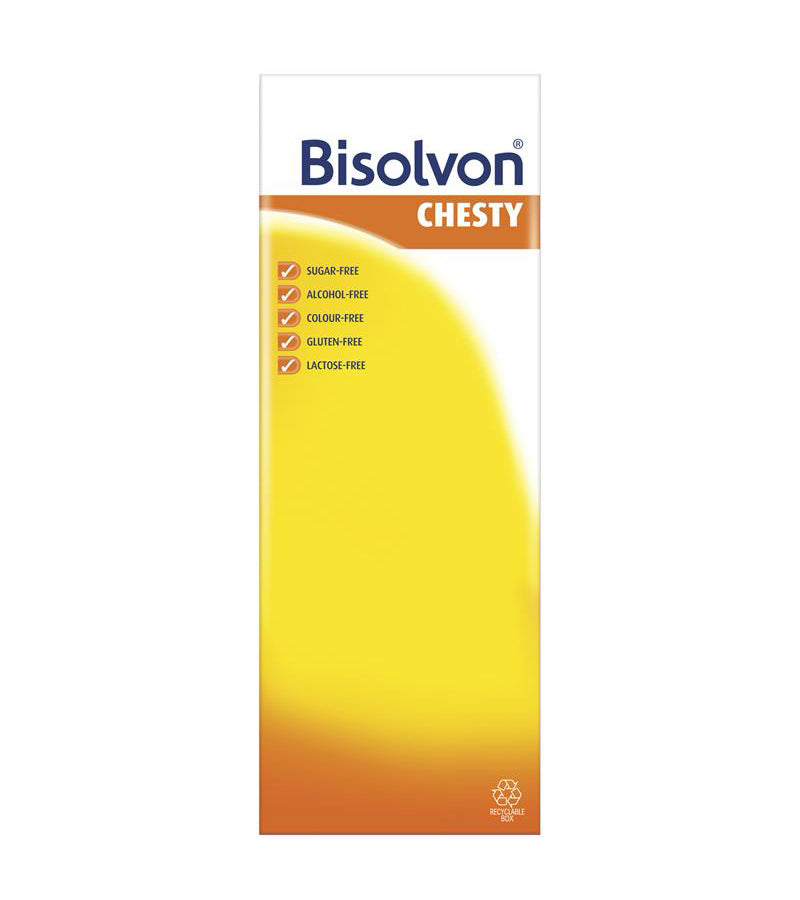 Bisolvon Chesty Liquid is a medicine to treat a chesty or productive cough. A chesty cough is when chest is congested with mucus that is difficult to cough up, and you will sometimes hear a rattle in your chest when you breathe or cough.