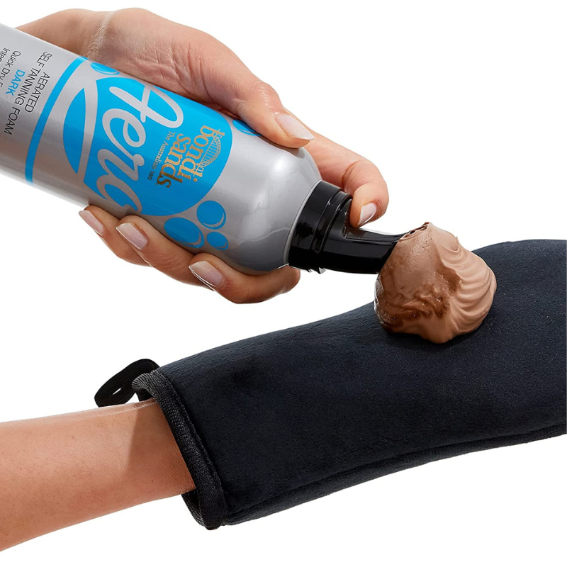 - Apply Bondi Sands Aero liberally to a Tanning Mitt before using long, sweeping motion to legs, arms and body. Use remaining residue on tanning mitt for face, elbows and knees.