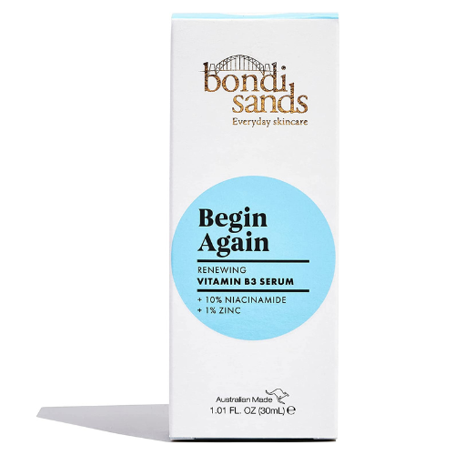 Bondi Sands Begin Again Vitamin B3 Serum, breathe a sigh of relief knowing you can Begin Again with this fast absorbing Vitamin B3 serum. Targets hyper-pigmentation and uneven skin tone to brighten and resurface your skin and is enriched with Niacinamide, Squalane & Lilli Pilli for an even complexion.