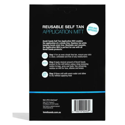 - This durable, double-sided mitt flawlessly applies Bondi Sands self-tan foams or lotions for beautiful results.