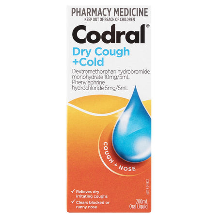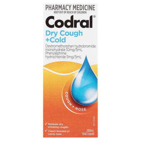 Codral Dry Cough + Cold Berry Oral Liquid relieves dry irritating coughs. Clears blocked or runny nose. Relief from heavy chesty coughs.
