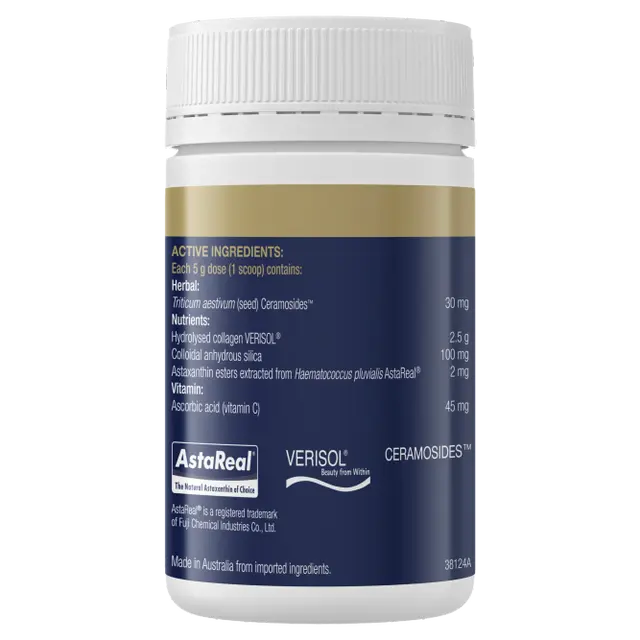 Collagen Activ contains vitamin C to support collagen formation and skin elasticity. It also features Ceramosides™ to support skin hydration and skin elasticity in females, VERISOL® collagen to support skin firmness and skin health in females, plus astaxanthin to act as an antioxidant in postmenopausal females. Collagen Activ is a great tasting blood orange flavoured oral collagen powder.