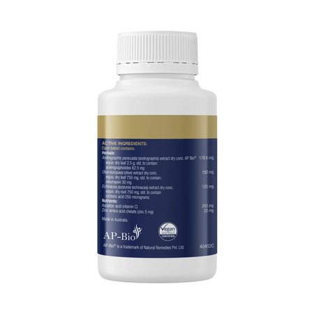 Each tablet provides 62.5mg. Echinacea is used to relieve the severity of symptoms of mild upper respiratory tract infections. Andrographis reduces the symptoms associated with mild, including sore throat. Olive leaf is used to relieve mild fever. Vitamin C and zinc provide nutritional support for healthy immune function.