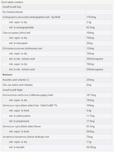 Developed by ArmaForce , a comprehensive formula combined with a blend of powerful herbs and nutrients that has been scientifically formulated to provide relief of symptoms, decrease the duration of upper respiratory tract infections and the severity of colds. ArmaForce supplies nutritional support for healthy immune function.