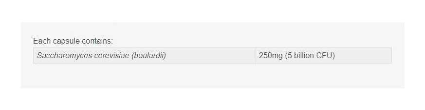 Saccharomyces cerevisiae (boulardii) 250mg (5 billion CFU)