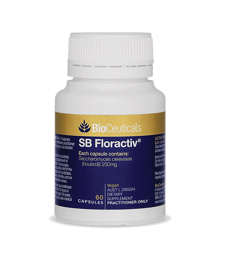 BioCeuticals SB Floractiv/Saccharomyces Boulardii (SB), a subspecies of S. cerevisiae, is a non-pathogenic biotherapeutic probiotic agent that supports the establishment of friendly bacteria in the gastrointestinal tract (GIT). In the GIT, SB increases the production of secretory IgA (slgA), short-chain fatty acids and the activity of the brush border disaccharide digestive enzymes. It also discourages the growth of unfriendly micro-organisms and reduces digestive inflammatory mediators.