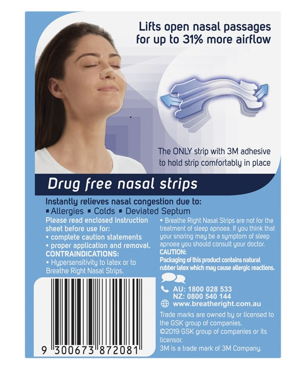 Contraindications: Hypersensitivity to latex or to Breathe Right Nasal Strips.
