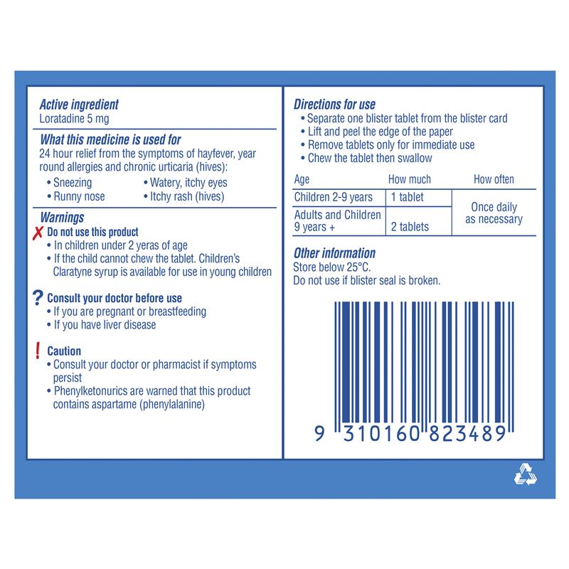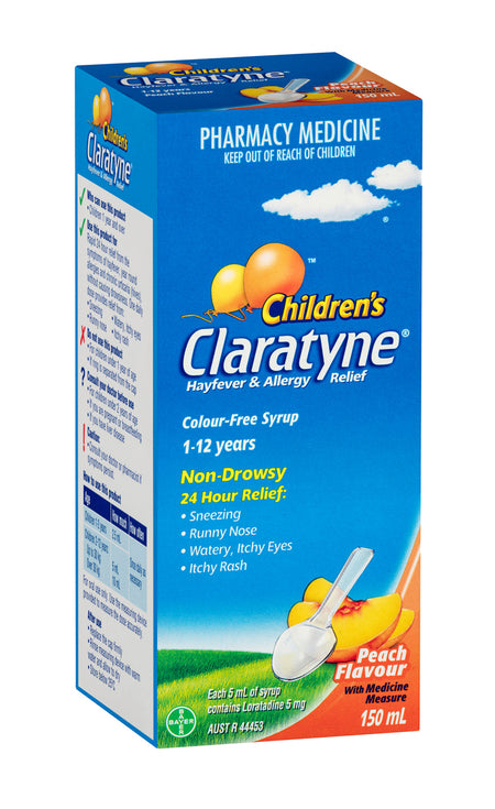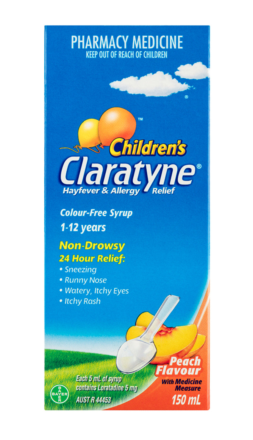 Claratyne Children’s Peach Syrup provides rapid 24 hour, non-drowsy relief from Hayfever, year round allergies and chronic urticaria (hives)