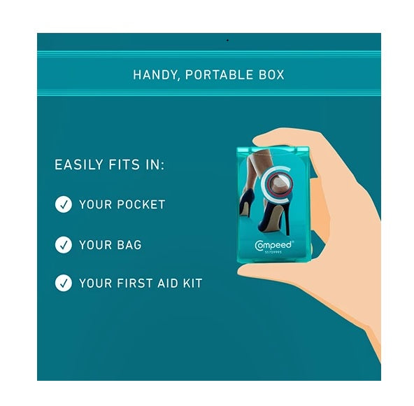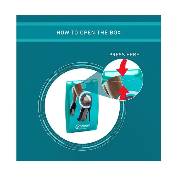 COMPEED® High Heel Blister Plaster with advanced hydrocolloid technology for instant pain relief and fast healing. The unique butterfly shaped design with translucent edges neatly fits under the achilles for ultimate discretion. Suitable for all blisters caused by wearing high heels.