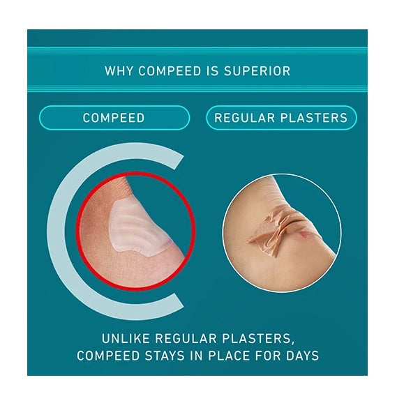 Ultra adhesive and tapered edges so Compeed flexes with movement and stays in place for several days