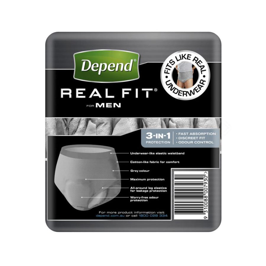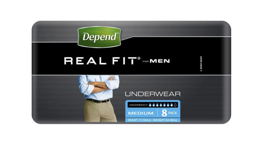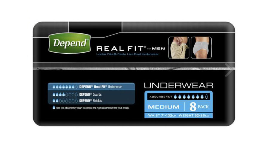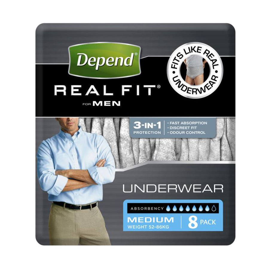 Depend Real-Fit Underwear for Men, specifically designed to fit like real underwear and protect against heavy loss of bladder control. It is soft, discreet and breathable.