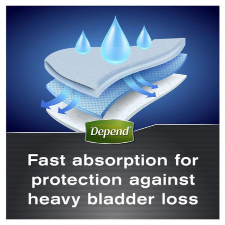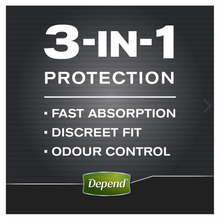 The Depend absorbency protection system will keep you free from leakages and trap odour all day long, so you can relax without the worry of unwanted odour throughout the day. Odour elimination technology is also featured in the pants to further ensure you are protected from any unwanted odour.