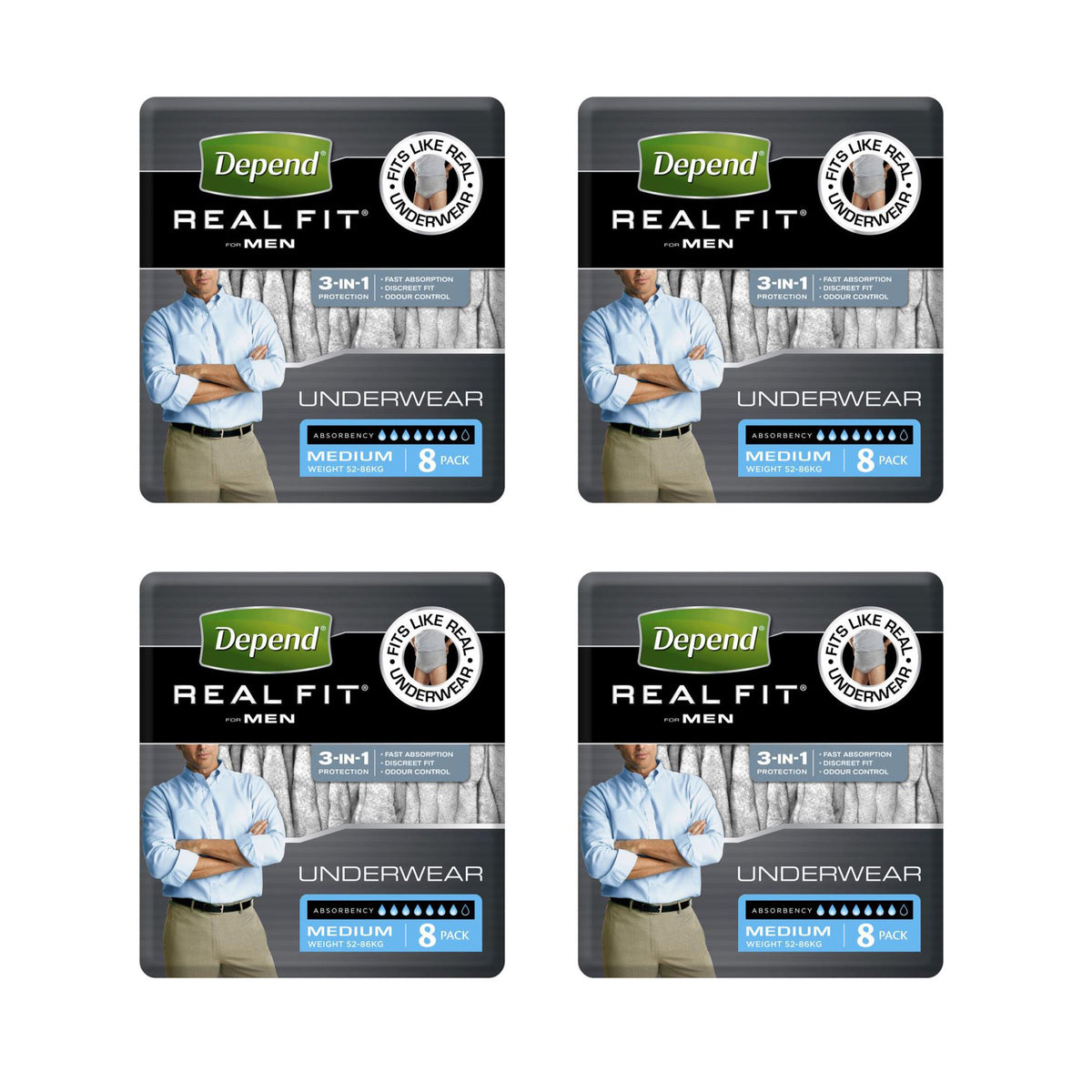 Depend Real-Fit Underwear for Men 4 x 8 Pack - Size Medium