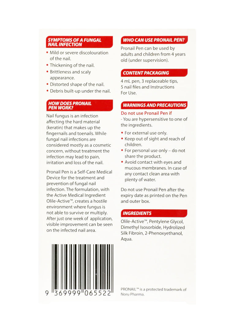 - Start using Pronail Pen at the first sign of a fungal nail infection.