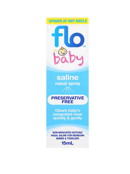 Flo Baby Saline Plus Nasal Spray help clear a baby‘s runny or blocked nose quickly, gently and easily. Our spray deliver a gentle, non-medicated, preservative-free nasal saline that is suitable for daily use.