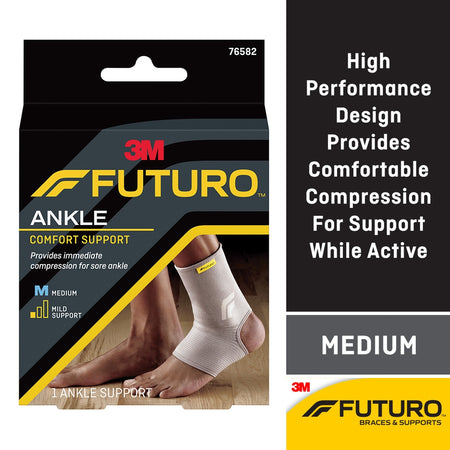 Futuro™ Comfort Ankle Support, designed to provide reliable support to weak or injured ankles, it delivers the targeted attention your ankle needs to help keep you on the move. This convenient elastic knit ankle brace easily slips over your foot for quick on and off, and the breathable, compressive design fits in most shoes to offer comfortable, long lasting wear. Whether you need all day support, support on the court or at the gym, Futuro™ Comfort Ankle Support help keep you on your feet and in the game.