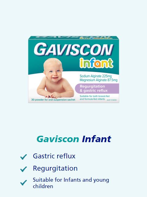 Treatment with Gaviscon Infant helps to significantly reduce how often a baby brings up milk and also makes the reflux less severe. The number of times a baby is sick can be reduced by nearly two thirds by using Gavison Infant.