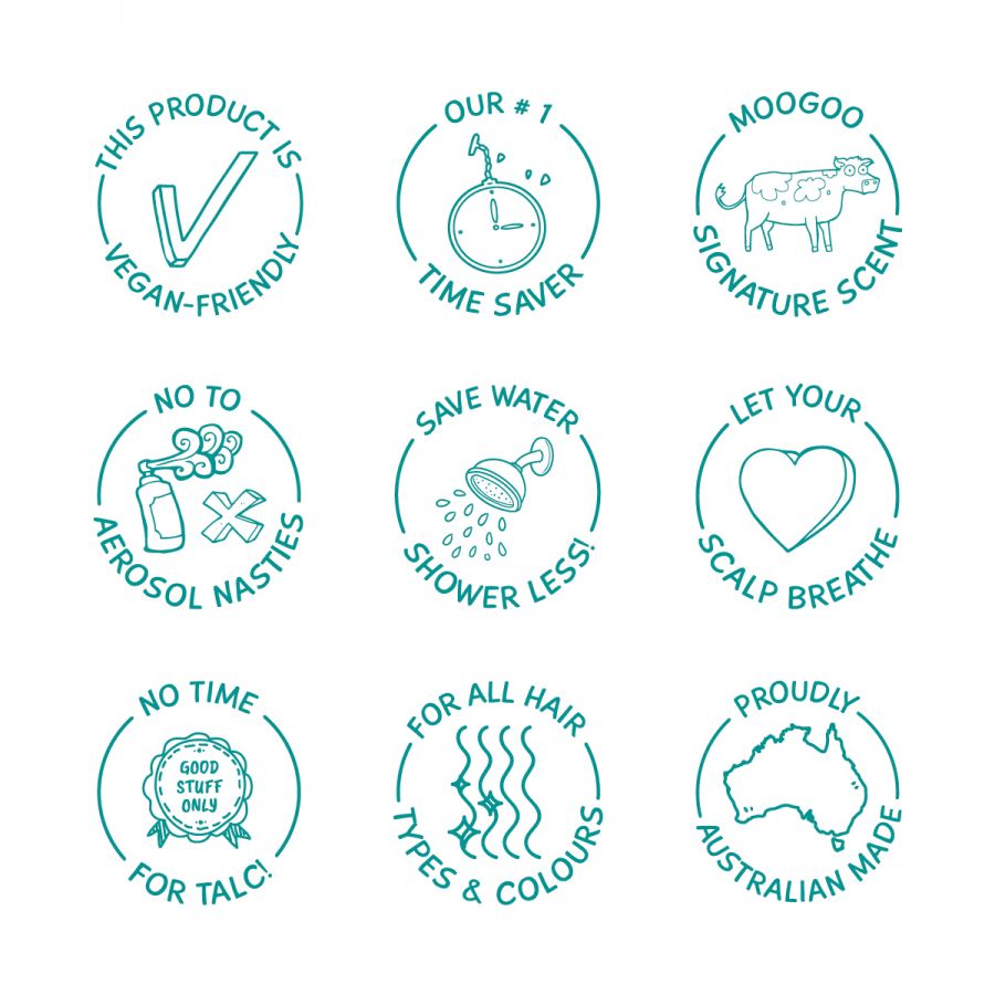 Because we like things au natural, we made our dry shampoo powder formula with a blend of food-based powders and made them extra fine to work better at absorbing oils. Application is super easy with our handy, little shaker bottle delivery system to get the product right where you need it. No more hiding dirty hair under a hat! Using natural ingredients makes it gentle on the scalp, cause that’s how we roll, and even though it’s a white powder, it’s good to go for all hair types. Our dry shampoo powder also comes with our yummy signature MooGoo smell, giving you a quick refreshment no matter what you've been up to. It also adds a bit of volume to the hair you never had before making this a double-win situation. Now kick the (aerosol) can and get shakin'.