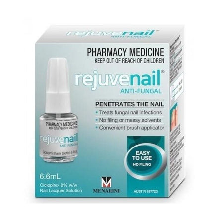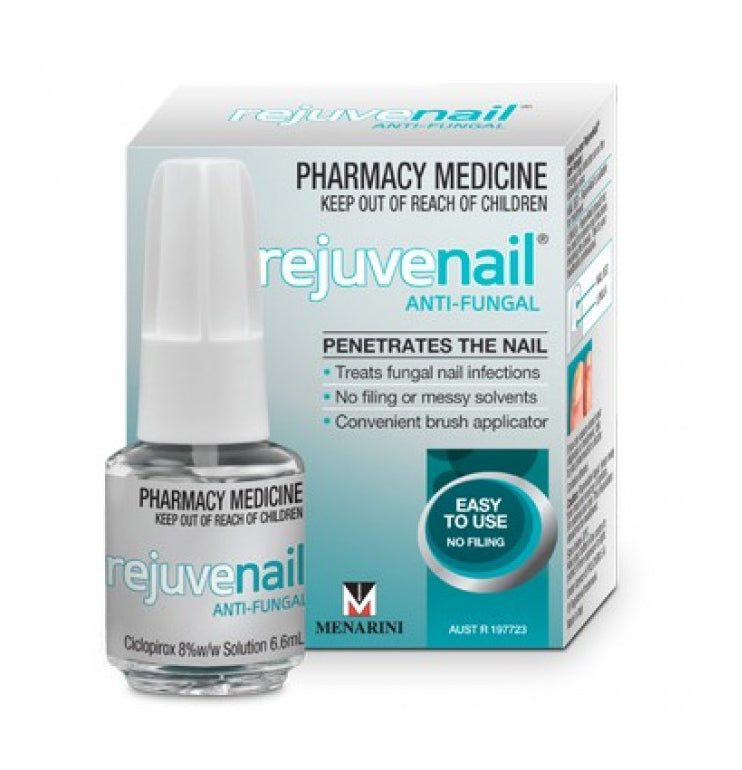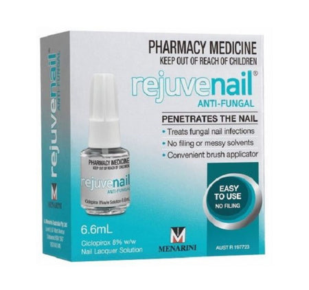 Rejuvenail Antifungal Nail is a specially developed nail lacquer for the treatment of fungal infections of toenails and fingernails. The active ingredient ciclopirox penetrates the nail to reach the site of fungal infection and prevents growth of the fungal infection by destroying the fungi that cause nail infections.