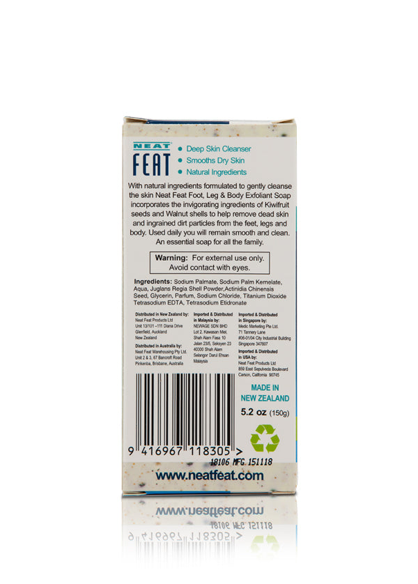 Neat Feat Foot Scrub Soap, use during shower an exfoliating soap that removes ingrained dirt and dead skin.