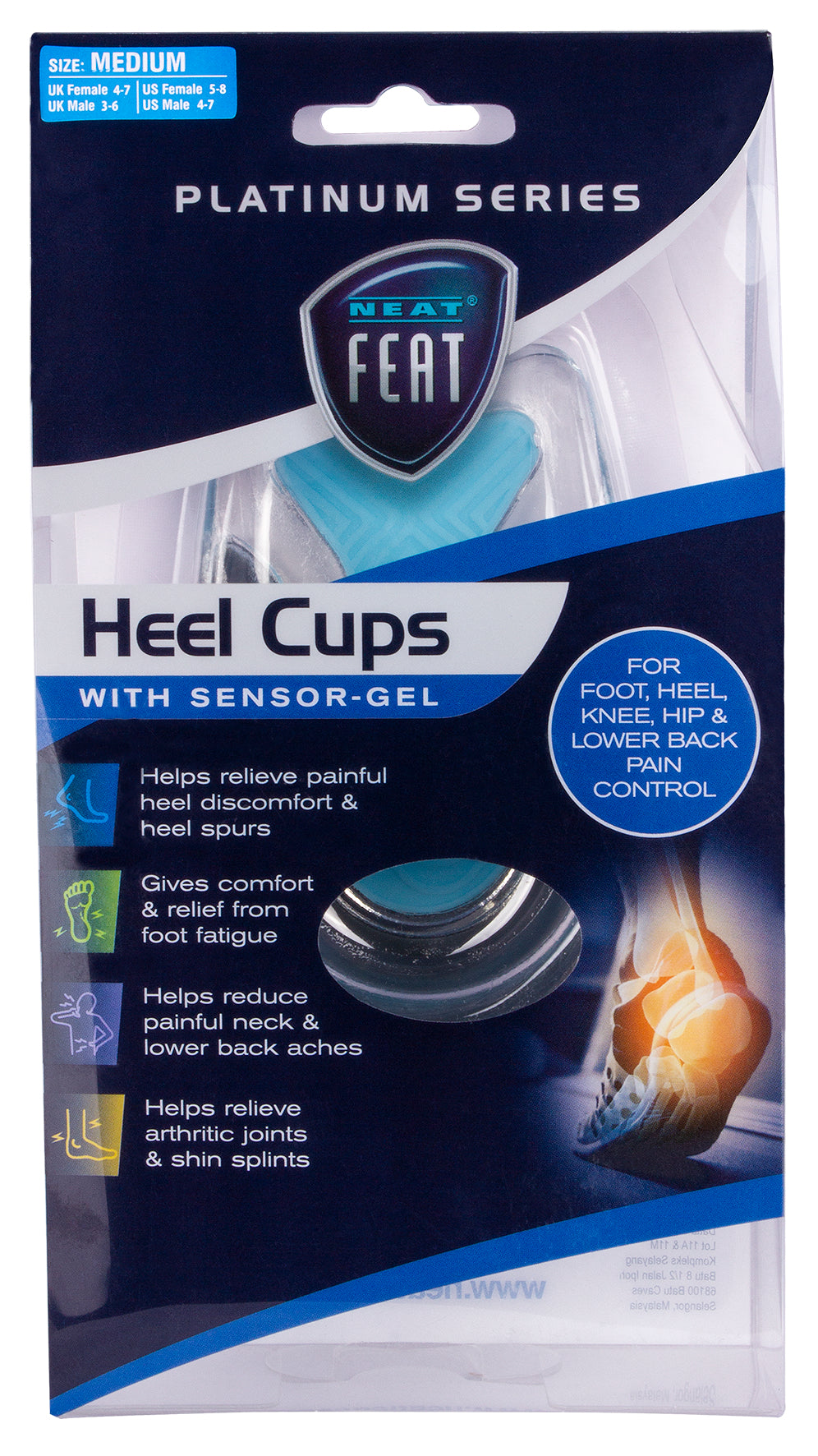 Neat Feat Gel Heel Cups you can cradle your heel and provide stability while walking. The construction absorbs the pounding shock of the heel.