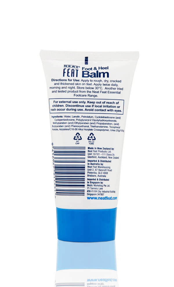 The active ingredient rehydrates the skin and repairs skin damage with noticeable results within 5 days. Once the repair work is done, the lighter Neat Feat Foot & Leg Moisturizer can be used on a daily basis to maintain smooth heels. Neat Feat Foot and Heel Balm is used widely by diabetics to ensure their skin stays smooth and prevents cracking and foot deterioration. Recommended by many podiatrists worldwide.