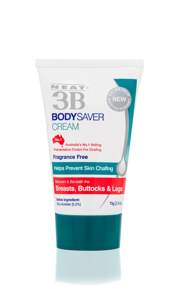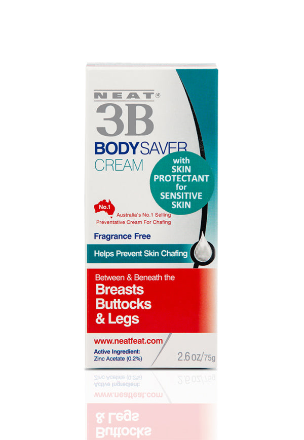 The product may also help to prevent fungal infections such as tinea and intertrigo which tend to occur in these warm, moist areas of the body. These problems are common amongst people who are active and who participate in sporting activities. Chafing and associated friction problems may also occur in people who carry extra weight. Developed by the same doctors who introduced Neat Feat Roll-on, the world’s first roll-on antiperspirant deodorant for feet, Neat 3B Body Saver Cream has quickly been adopted by sports people and by people living in the warm climate areas of the world.