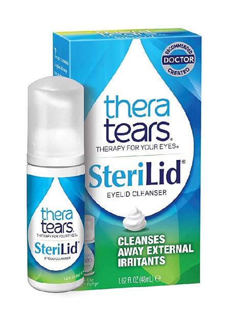 TheraTears Sterilid Eyelid Cleanser Foam removes oil, debris, and other contaminants that can build up on eyelids and eyelashes. Sterilid is a natural, plant-based formula with Tea Tree Oil that gently cleanses eyelids and lashes. The entire regimen only take 60 seconds for maximum benefits. Part of the TheraTears Dry Eye Therapy line formulated for Dry Eye symptoms. TheraTears is not only recommended by doctors, it was created by an Ophthalmologist after 18 years of research