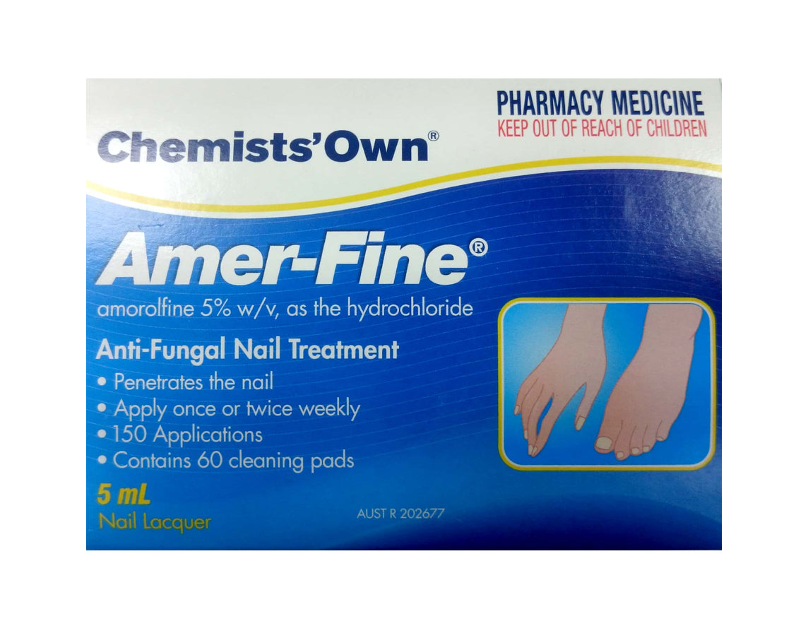Chemists Own Amer-Fine Anti-Fungal Nail Treatment Kit contains the active ingredient amorolfine. It is used to treat fungal infections of the nails.