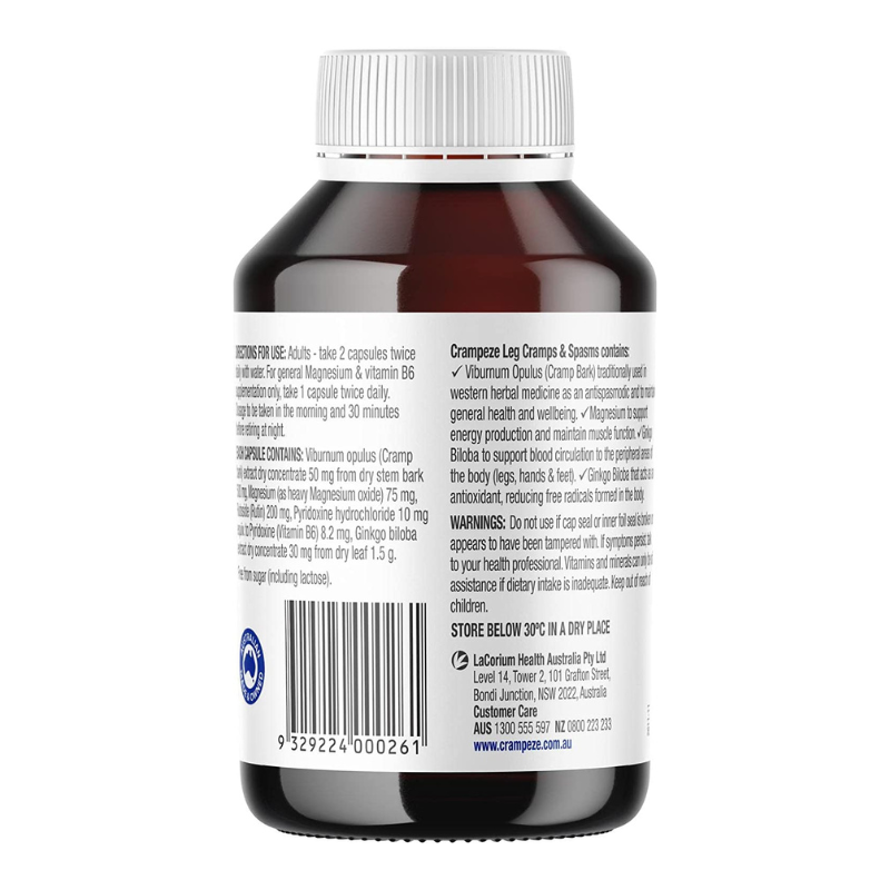 Crampeze 120 Capsules, is a natural alternative capsule which contains Viburnum Opulus traditionally used in western herbal medicine to help relieve muscle cramps, mild muscle spasms & twitches. They also provide magnesium supplementation.
