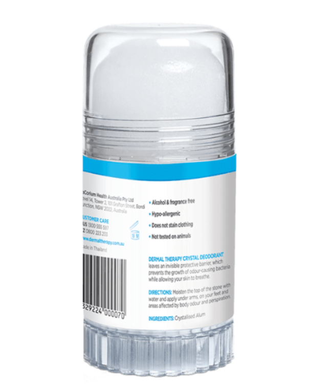 Thanks to its hypoallergenic properties, the Crystal Deodorant is perfect for sensitive skin and can also be used on other areas of the body affected by body odour and perspiration, such as feet. Alcohol and fragrance free, Dermal Therapy Crystal Deodorant will leave you feeling fresh and ready for anything.