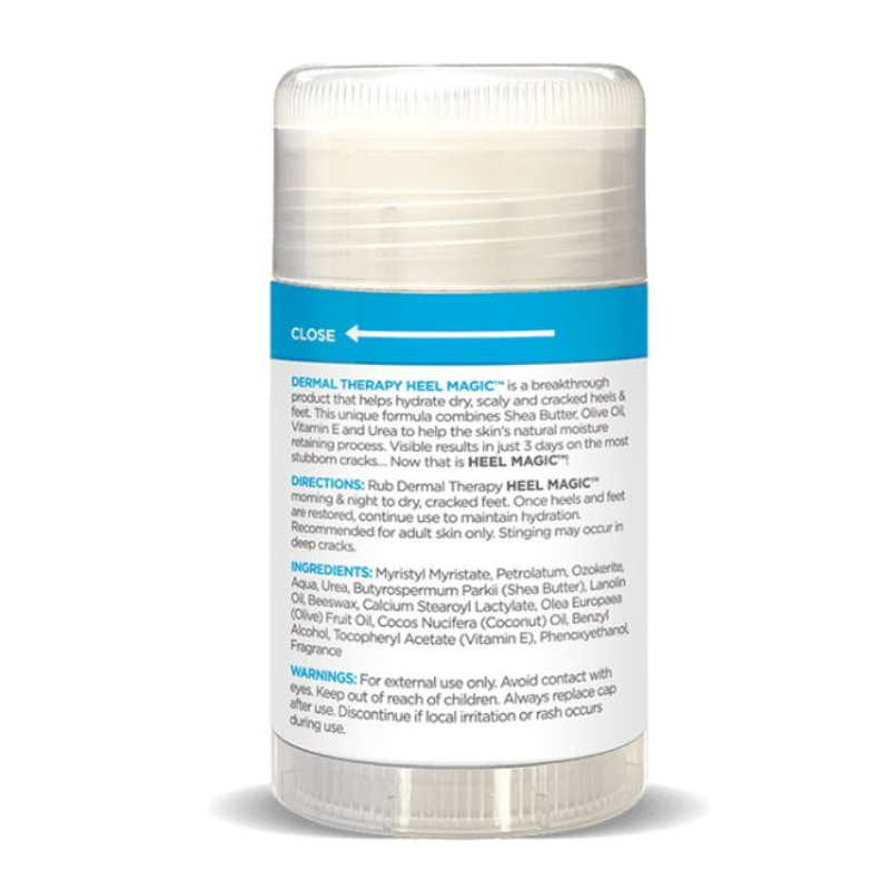 - Easy to use, no-mess applicator - A convenient size to keep in your bag or travel kit, Dermal Therapy Heel Magic is ideal for those with mobility or dexterity issues, with an easy to use, no mess applicator to help you soothe cracked heels in no time.