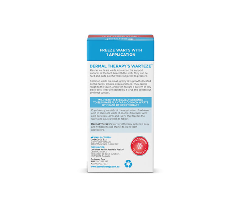 Dermal Therapy Warteze is specially designed to eliminate plantar and common warts by means of cryotherapy.