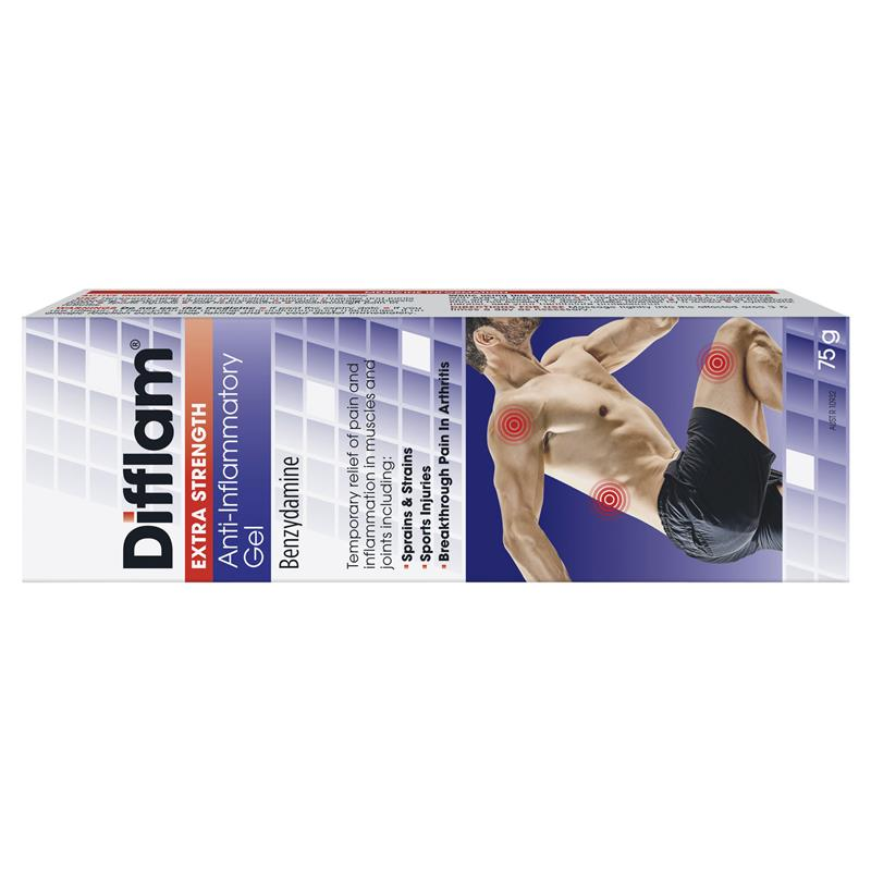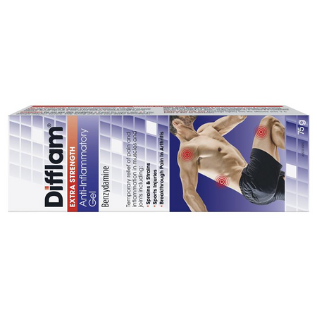 Difflam 5% Extra Strength Gel are clinically proven to treat the cause of pain - the inflammation. They contain the anti-inflammatory active Benzydamine hydrochloride, which has a triple action effect - Anti-inflammatory, Analgesic and Local Anaesthetic.