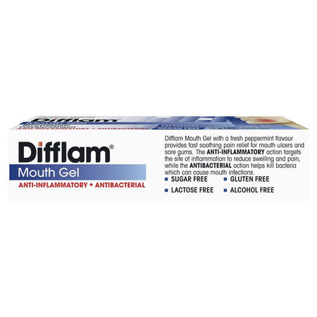 Difflam Anti-Inflammatory Mouth Gel with anti-inflammatory action reduces swelling and inflammation, while the antibacterial action helps kill bacteria which can cause mouth infections.